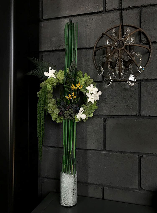 毎回変わるテーマは花の枠にとどまらず、プリザーブドフラワーの可能性を常に探求しています。