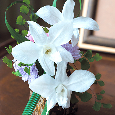 デザイナーは公益社団法人日本フラワーデザイナー協会(略称:NFD) 本部講師の松澤英美子さんです。