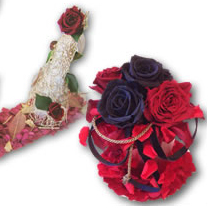 網野:こちらもカラーメリアと呼んでいます。同じくカラーをカメリア風に作ったものです。プリザーブドはソフトで使いやすく多少広げたりができますので、いろいろな使い方が出来ます。