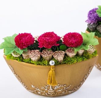 プリザーブドフラワーなら水替えの必要もなく長期間にわたって美しいまま飾っていただけます。今回は仏花でよくつかわれる色合いの菊や、優しい色合いのランをメインに使用したデザインをご紹介します。