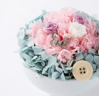 子育てが一段落してから生花のアレンジメントを始め、数年前にプリザーブドフラワーの魅力に惹かれ資格を取り、お花を教えることになりました。