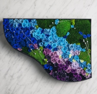 自然の風になびくような、プリザーブドとドライを組み合わせたアレンジ。