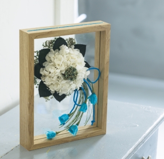 中心に、木のアルファベットで作った『florever』の文字と小さなハサミをアクセントにおきました。