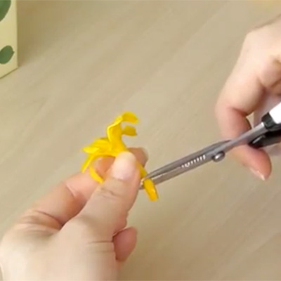 完成したブーケのハンドルの根本部分にアクセントとしてバックルをあしらいます。