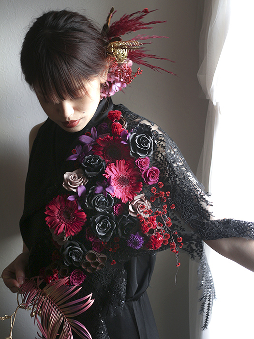 毎回変わるテーマは花の枠にとどまらず、プリザーブドフラワーの新しい可能性を常に探求しています。