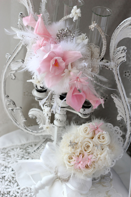 ふわふわファーで包まれたフェアリーなお花たち。 特別な日のためのフラワーアクセサリーとフラワーミラーは、いつもそばに飾っておきたいもの。