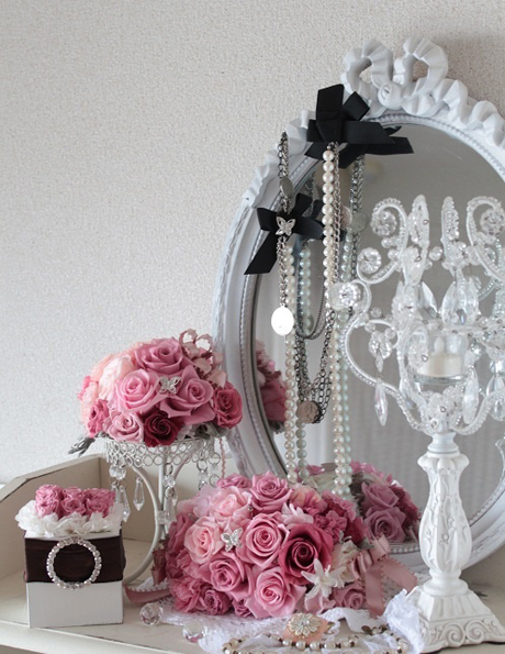 子供の頃に夢見たお姫さま〜大人になってもそんなピュアな夢を忘れずに生きていきたい〜そんな気持ちを朝のドレッサーの部分に再現してみました。 ピンクのグラデーションカラーでまとめたのがポイントです。