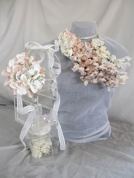 孫娘二人がクローゼットを開けたらお気に入りの花飾り。 お花の似合う女の子にそんな願いを作品に込めました。