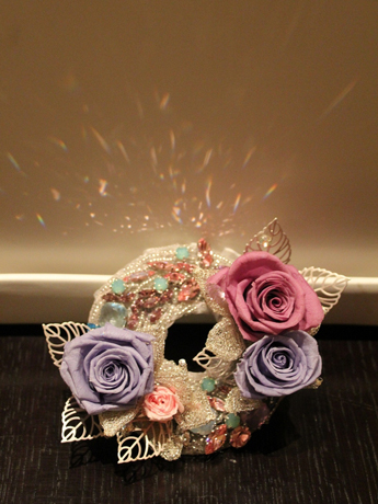 マジックスティック、スプレーローズ(ラベンダー)、ベイビーローズ(ラベンダーブルー)、マイクロローズ(ベイビーピンク)、スワロフスキー、天然石、フリーメタリコ、オーガンジー |