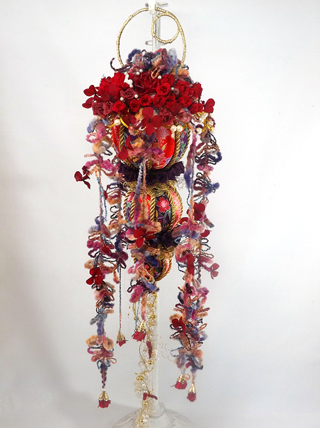 ちりめんで手作りした手鞠にビーズと毛糸をあわせたレトロな大正ロマン漂うブーケです。