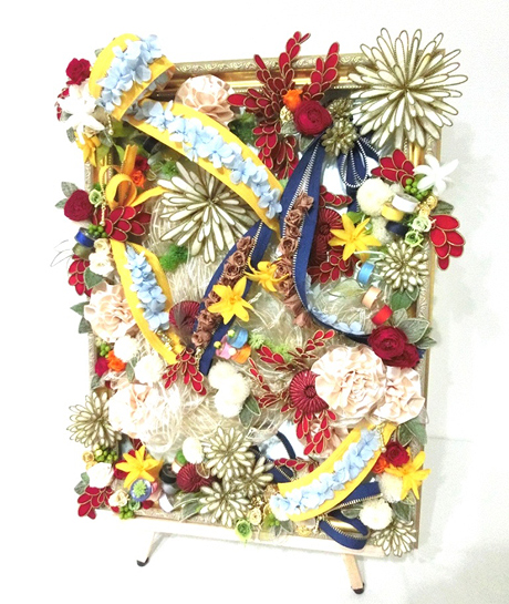 ファスナーという日常では忘れがちな素材をメインに作品を構成いたしました。 |