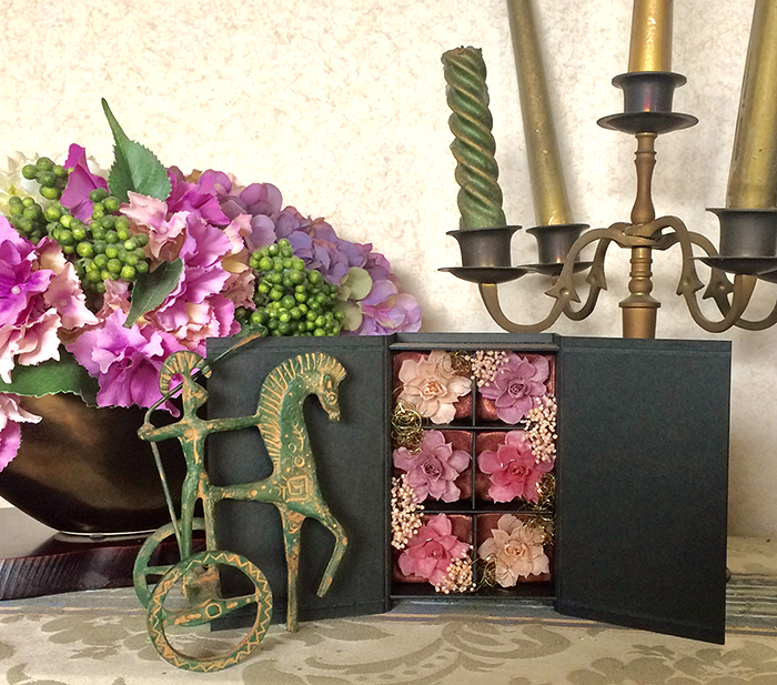 毎回変わるテーマは花の枠にとどまらず、プリザーブドフラワーの可能性を常に探求しています。