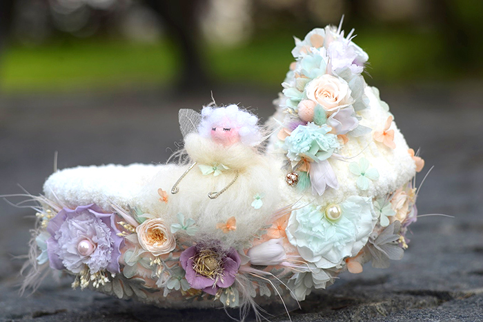 毎回変わるテーマは花の枠にとどまらず、プリザーブドフラワーの可能性を常に探求しています。