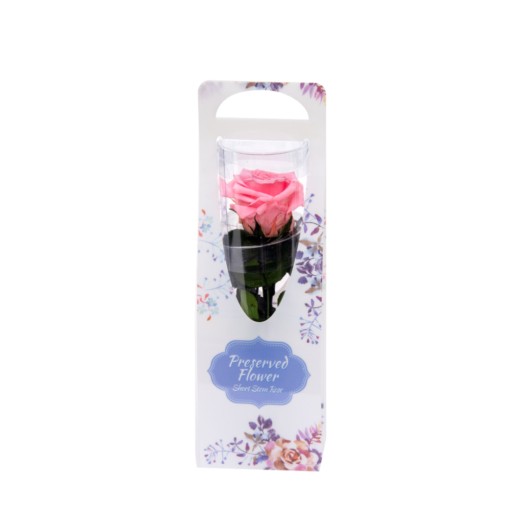 ステム付きローズは、花だけでなく葉も茎もプリザーブド加工され、まるで本物のバラのよう。用途に合わせてパッケージをお選びいただけます。