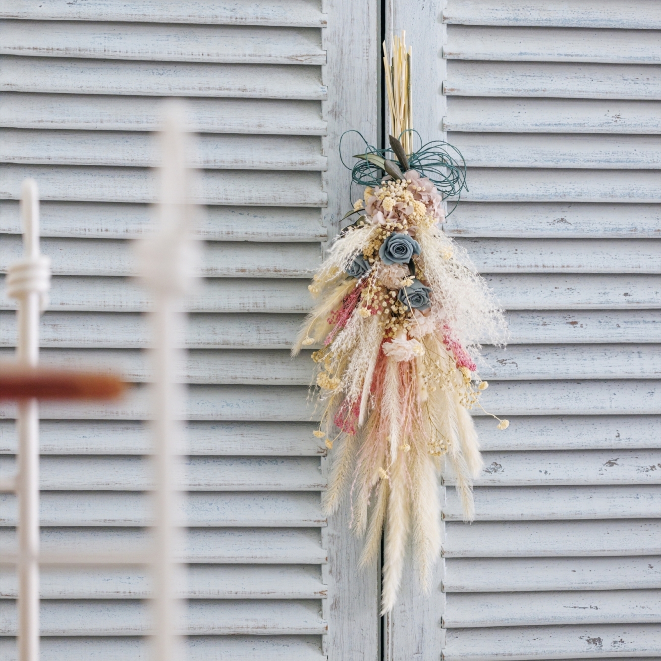 新商品ドライをメインに、ふわふわ感を感じるスワッグに仕立てました。