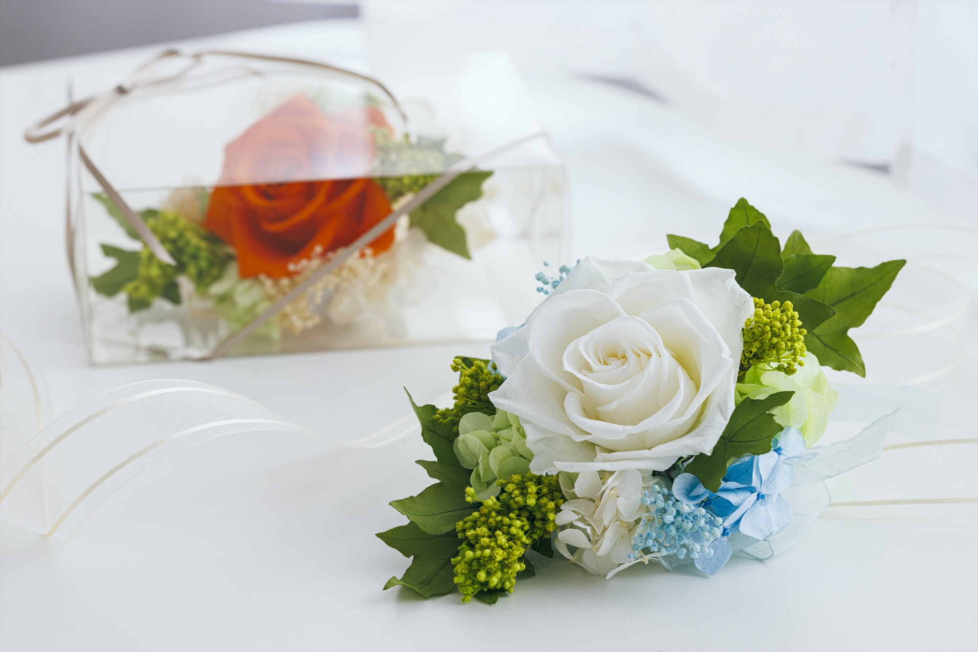 現在は百貨店やスタジオのディスプレー、ウエディング用オーダーブーケのほかプロポーズブーケのドライ加工、プリザーブドフラワー加工も手がける。