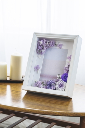 インテリアにも馴染み、フューネラル向けのフレームとしても使用できるマムのフレームアレンジメント