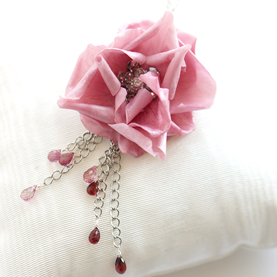 3Dチャームの穴を利用してチェーンを垂らします。 ペタルの色、天然石の色を変えると、また違った雰囲気のアクセサリーが出来ますね。 |