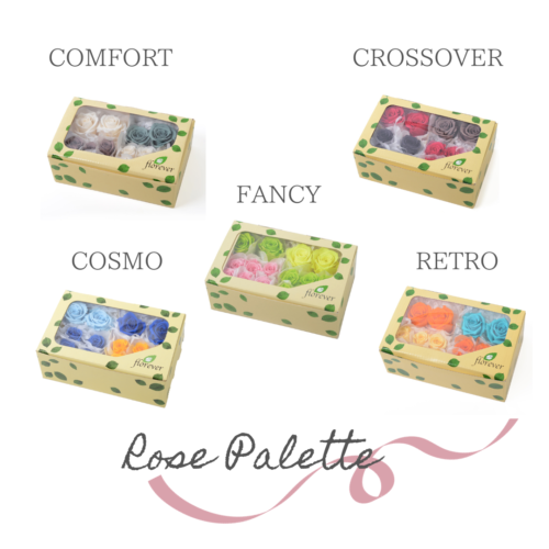 1つの小箱に複数の色とサイズのローズが入った「ローズパレット」