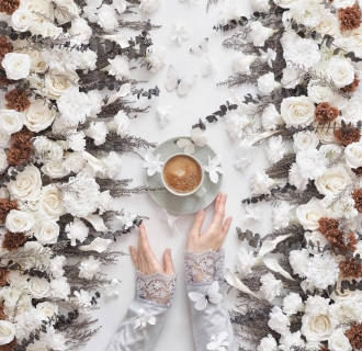 蕾から満開まで生花のような表情豊かなアレンジを製作。