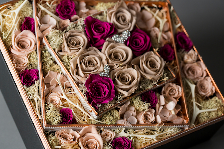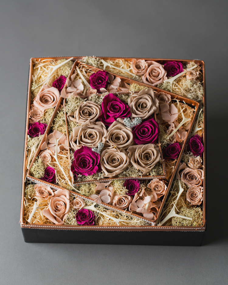 男性から女性に贈る、フラワーバレンタインをイメージしたボックスギフト。