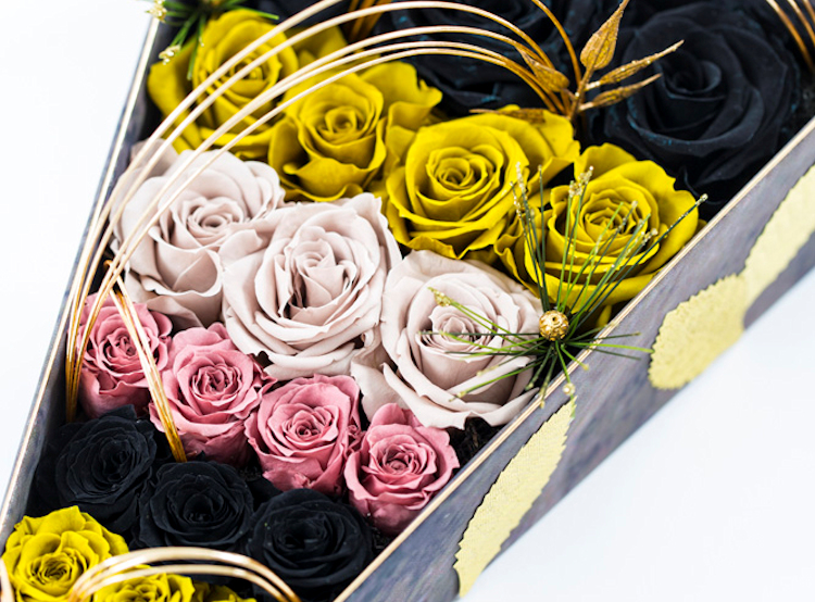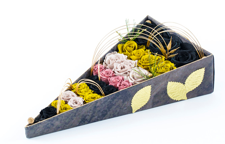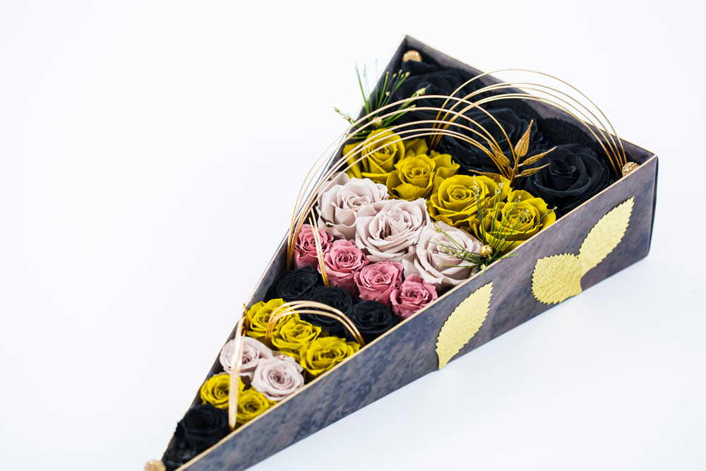 重厚感とモダンさを出すため、極力シンプルに、ラインで魅せるアレンジメントにしました。