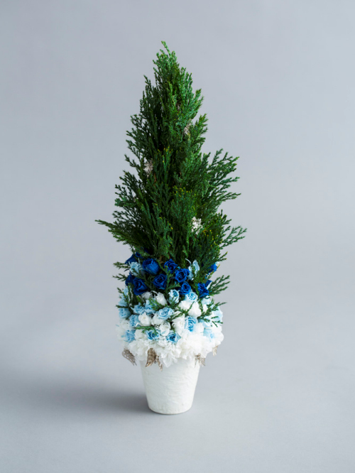 新商品『コノテヒバ』『エルウッディー』を使ったクリスマス向けのアレンジ。