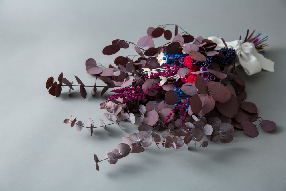 キーワード:シネラリアリーフスワッグドライフラワーナチュラルニゲラペッパーベリーユーカリラベンダーリンフラワー花束