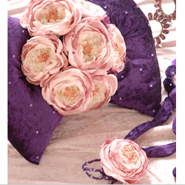 さて、つづいて作品の"色"について教えていただきたいんですが、今回の作品ではベイビーピンクとチェリーブロッサムの2色の花びら、オレンジ色とゴールドのカスミソウ、パープルの生地を組み合わせてお使いですが、色あわせについて気をつけていることや、こだわっていらっしゃることなど教えていただけますか?