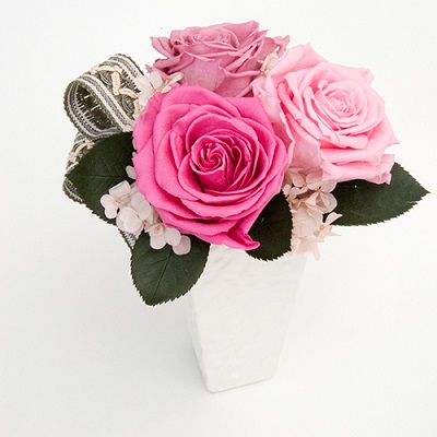 ピンクのグラデーションが一箱にセットになったピンクミックスのアレンジをご紹介します。