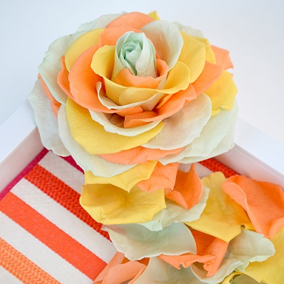今回使用している台紙は実はペーパーナフキンです! 最近ではスクラップブッキング用の紙など柄がかわいい紙が多いので、そういったものを合わせてもかわいいですね。 |