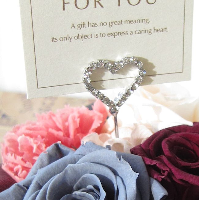 ダブルハートクリップは華やかさと同時に、ちょっとしたメッセージも添えることができます。