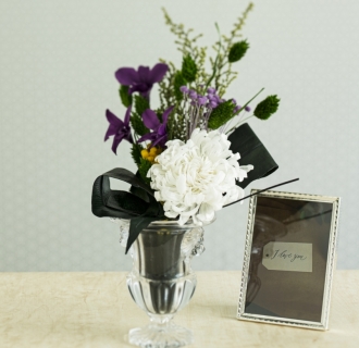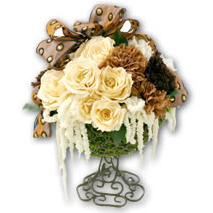 やさしい色合いの中に、シックなカフェ、ライトカフェのカーネーションを加え上品なイメージで仕上げています。