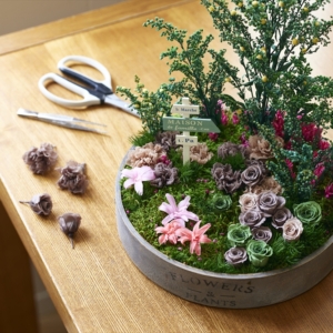 新色の「ブラウングレー」を使ったガーデン風アレンジ。