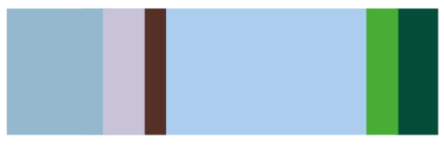 揺れる水面を思わせるような淡いブルーのグラデーションや、さざめく木々のように様々なグリーンを集め、そこにオレンジやピンクでアクセントを加えて自然の一部を切り取ったような配色に。優しく穏やかなグレイッシュブラウンには森のせせらぎをおもわせるブルー、グリーンがよく合います。