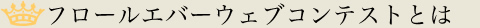 毎回異なるテーマのもとプリザーブドフラワーによるアレンジメント作品を募集。応募作品の中から30作品を審査員が選出し、入選作品はフロールエバーギャラリー(東京 日本橋)に展示されます。ホームページ上でのクリック投票と展示会場での投票より「Web Contest賞」「会場投票賞」を決定。審査員の方には「審査員特別賞」、また今年は協力会社各社による賞を選定していただき、入賞作品12点を決定いたします。 今回のウェブコンテストに限り、これら12作品は2011年フロールエバーカレンダーに掲載させていただきます。