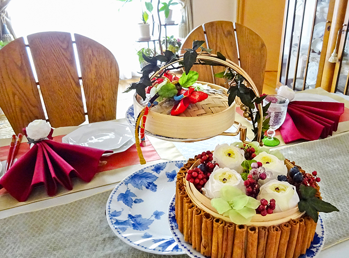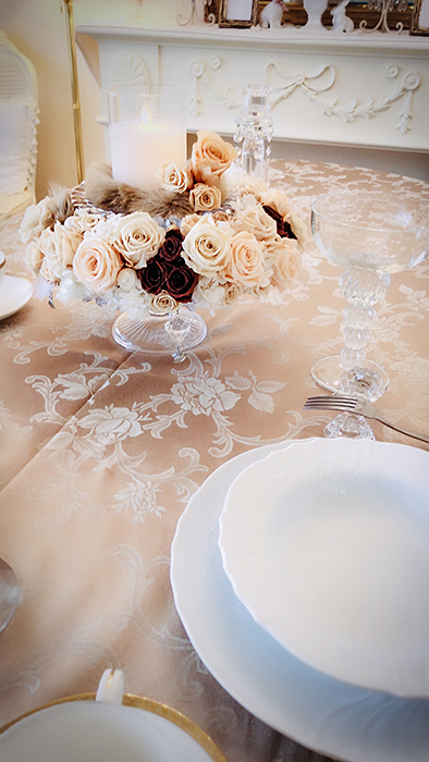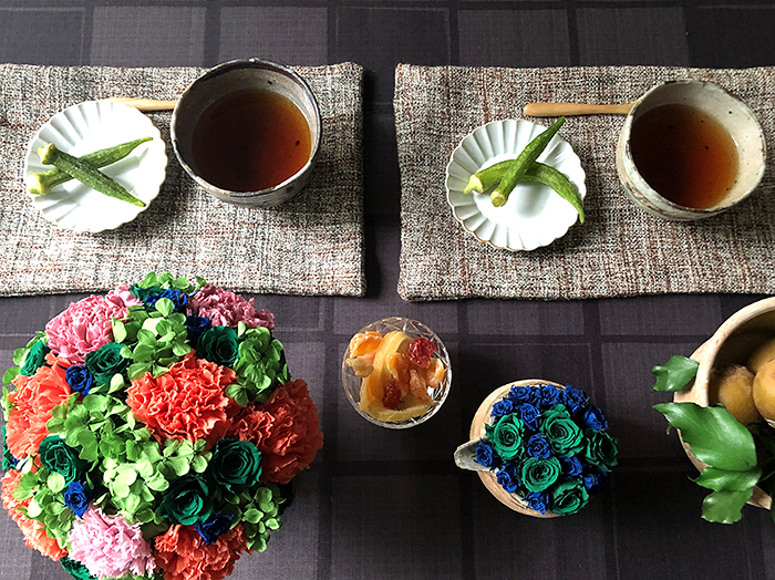 審査のポイントは、実際にこのテーブルで食事やお茶をするにふさわしいかという点です。お花は食卓に彩りと潤いを添えてくれますね。ましてこのコロナ禍において、自宅で食事をする時間が増え、暮らし方を見直す方を多くお見受けします。