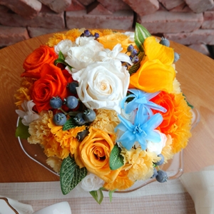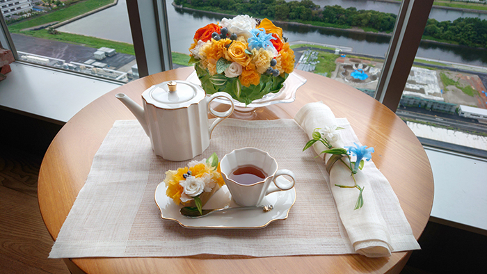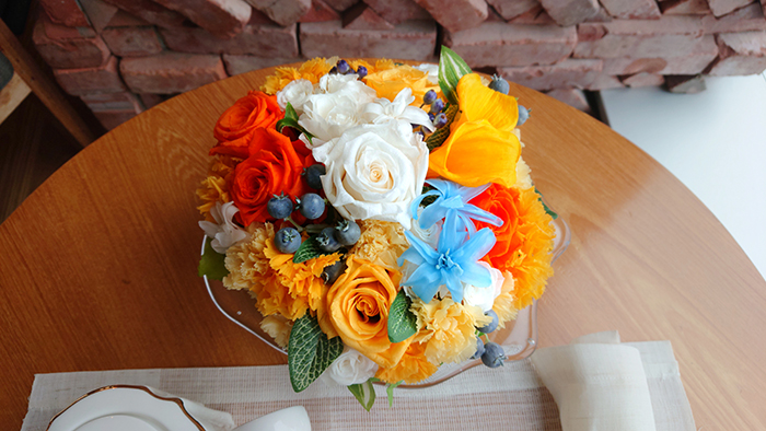 毎回変わるテーマは花の枠にとどまらず、プリザーブドフラワーの可能性を常に探求しています。