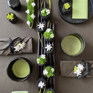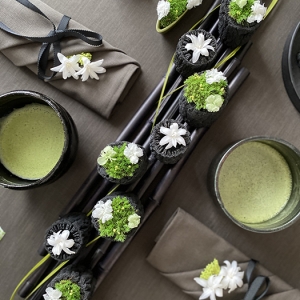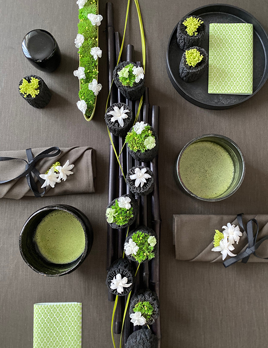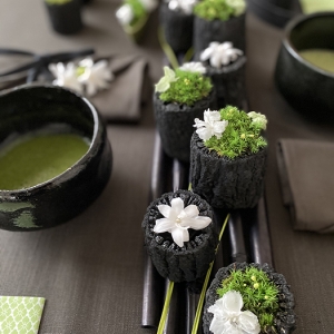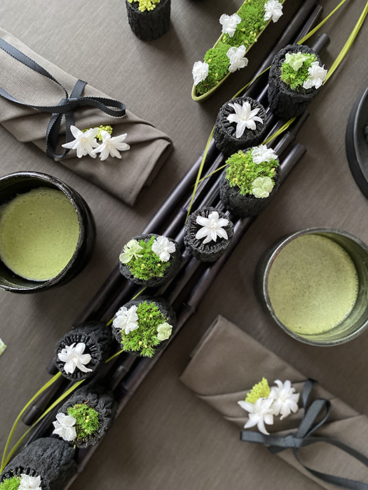 炭を使って、お花を飾り、庭園を眺める気分を味わいます。