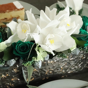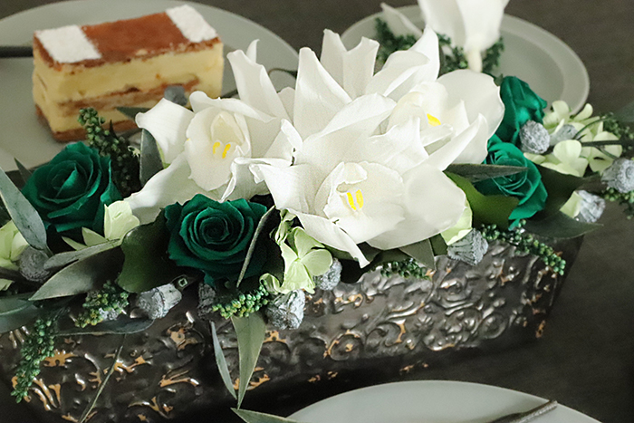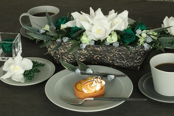 毎回変わるテーマは花の枠にとどまらず、プリザーブドフラワーの可能性を常に探求しています。