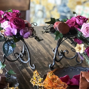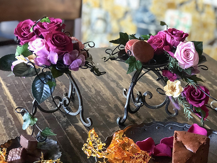 毎回変わるテーマは花の枠にとどまらず、プリザーブドフラワーの可能性を常に探求しています。