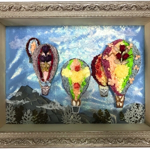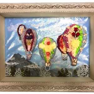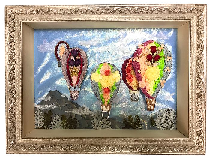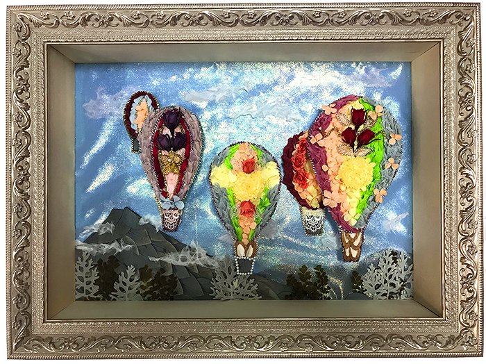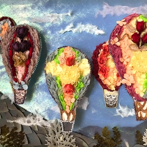 初冬の澄んだ青空の日、華やかな気球に乗って旅に出られたら、さぞ楽しいだろうと想像してみました。