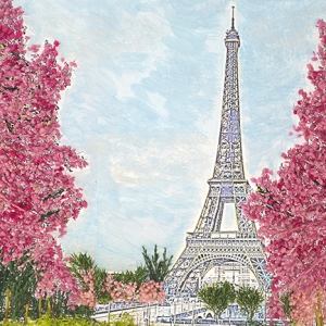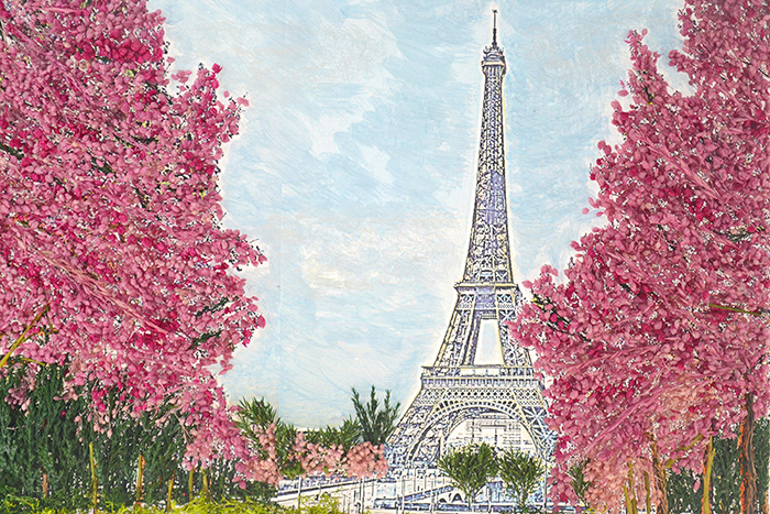 ジェルブロワの薔薇の窓辺、パリのマロニエや桐に囲まれたエッフェル塔、夢に見た光景をこの作品に込めて。
