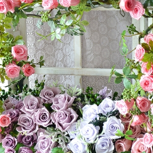 ダバリアファーン、リンフラワードライ、ソリダゴ、シネラリア、グリーンボール、ピッコラブロッサムローズ、ベイビーローズ、スプレーローズ、エルウッディ、フォックステイル、アキレアドライ、ブルーム、モス