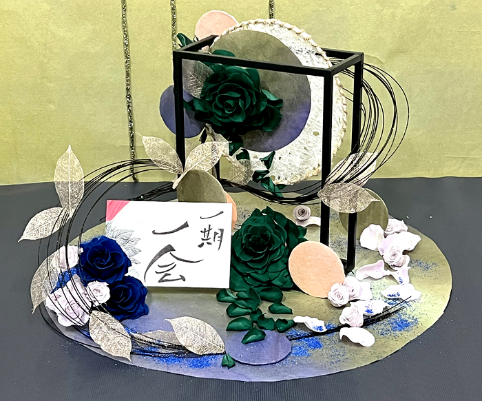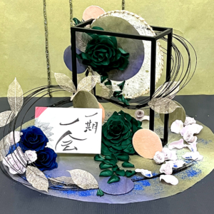 毎回変わるテーマは花の枠にとどまらず、プリザーブドフラワーの可能性を常に探求しています。