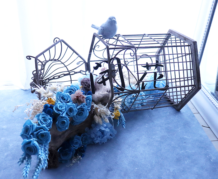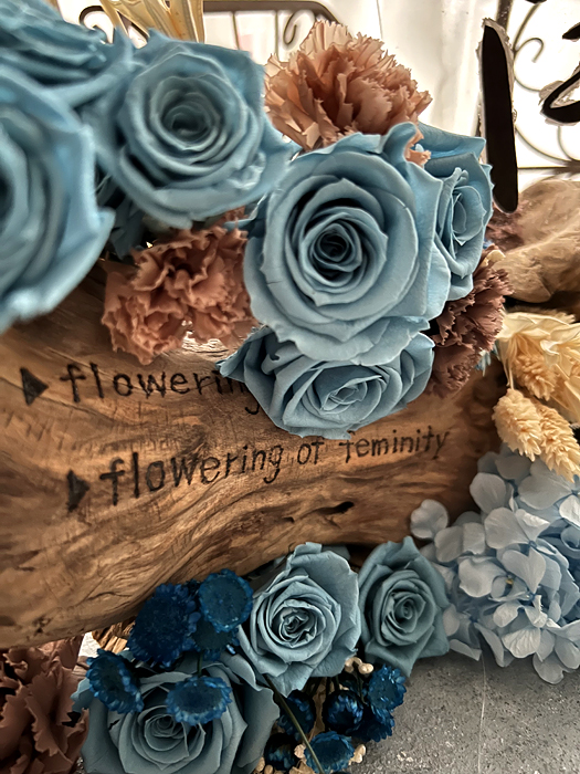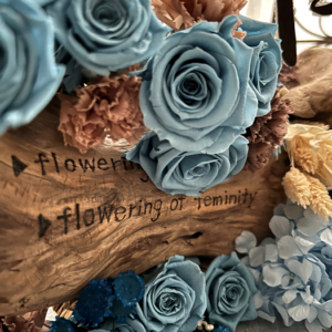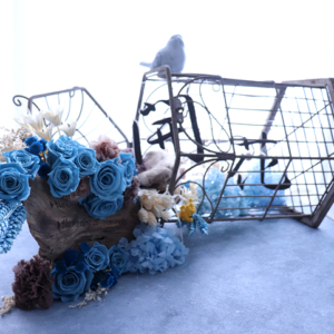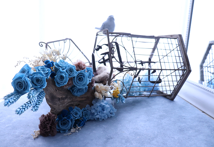 毎回変わるテーマは花の枠にとどまらず、プリザーブドフラワーの可能性を常に探求しています。