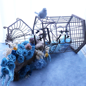内に秘めていた自己表現。それを鳥籠から鳥が羽ばたくように開花させるイメージで選びました。