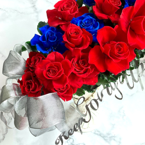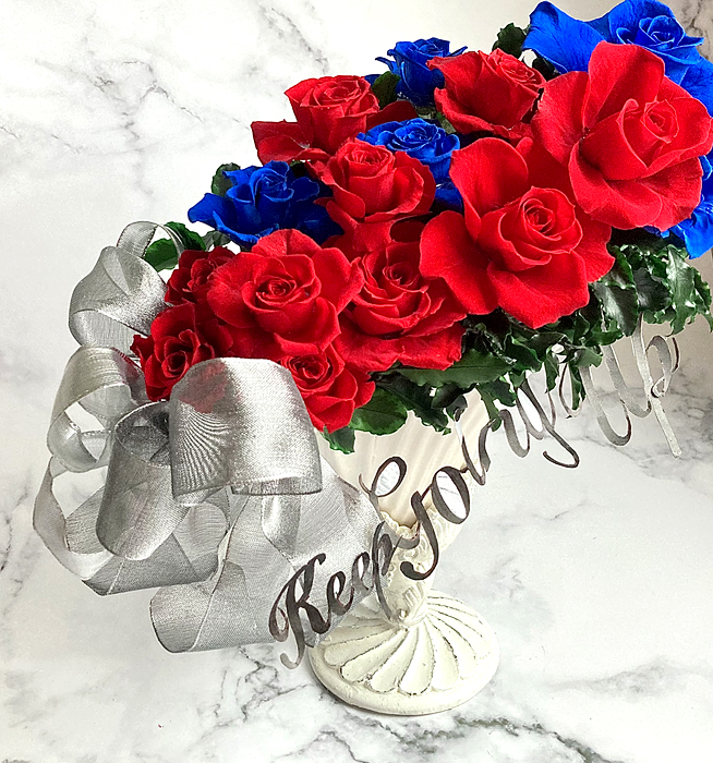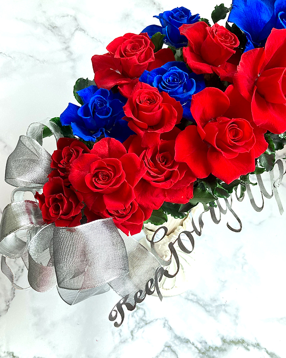 ※赤バラの花言葉=情熱、青バラ=夢叶う。