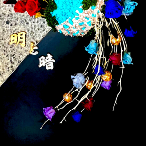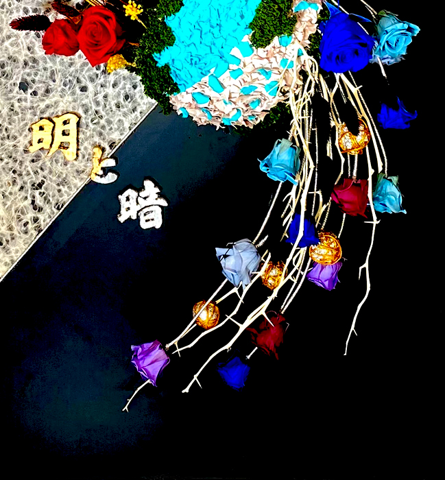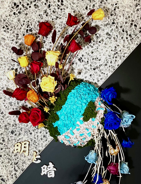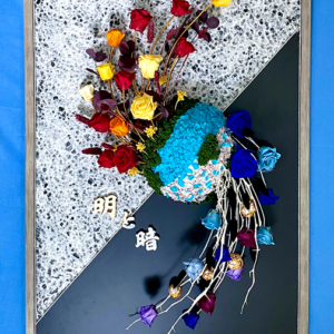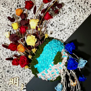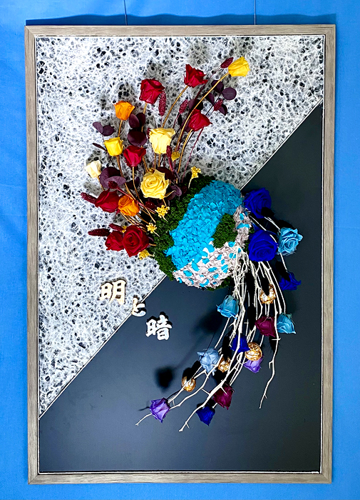 毎回変わるテーマは花の枠にとどまらず、プリザーブドフラワーの可能性を常に探求しています。