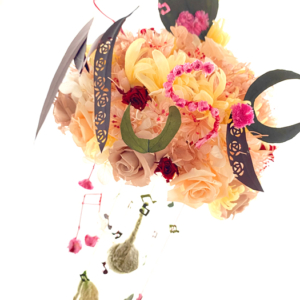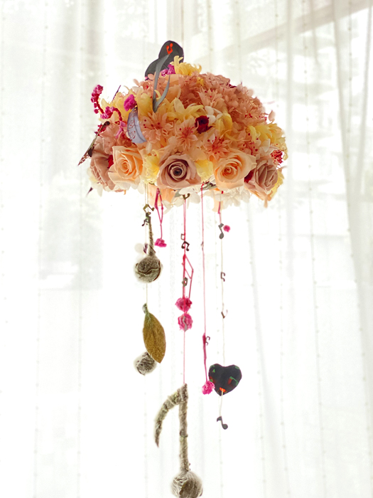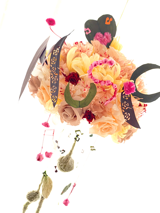 毎回変わるテーマは花の枠にとどまらず、プリザーブドフラワーの可能性を常に探求しています。